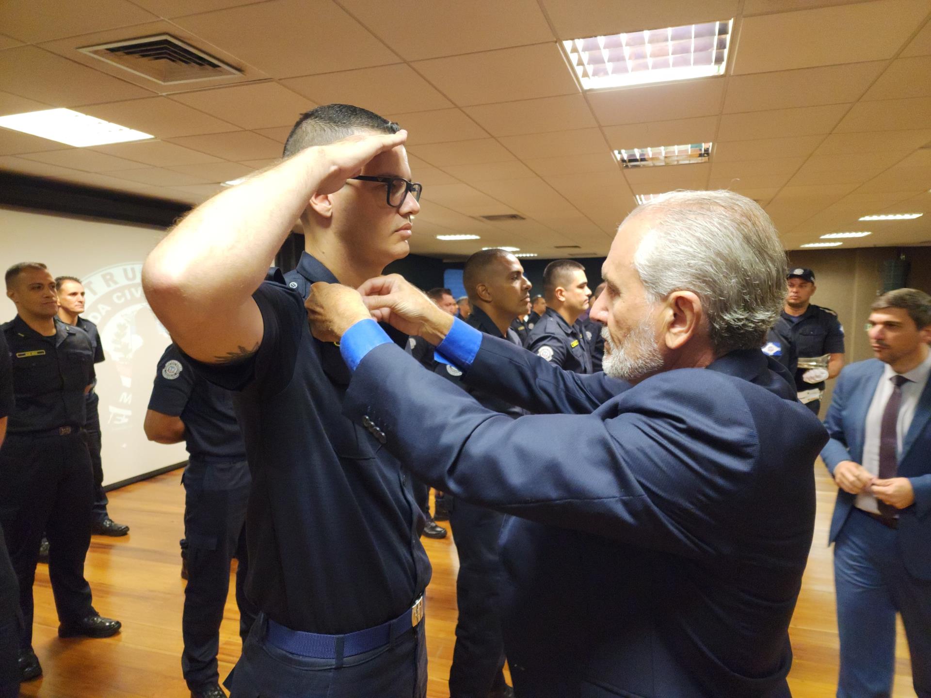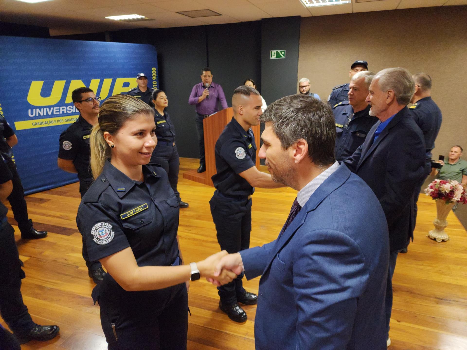 Os novos agentes da Guarda Civil Municipal (GCM) e da Defesa Civil estão, oficialmente, formados. A cerimônia de formatura ocorreu neste sábado (13), na Unip. Ao todo, receberam a certificação 53 GCMs – 12 da turma de 2021 e 41, de 2023 – e 23 agentes da Defesa Civil. Em ambos os setores, os servidores passaram por um amplo processo de formação.
